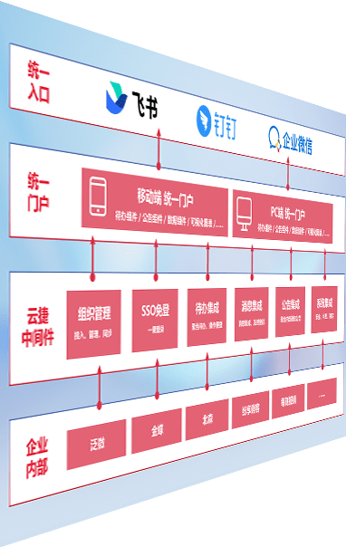 对协作平台提供支持服务,,支持企业应用与协作平台对接,,,包含组织同步、、、消息集成、、、、待办集成等。。。支持目前主流的协作平台:钉钉、、、、企微和飞书。。。。